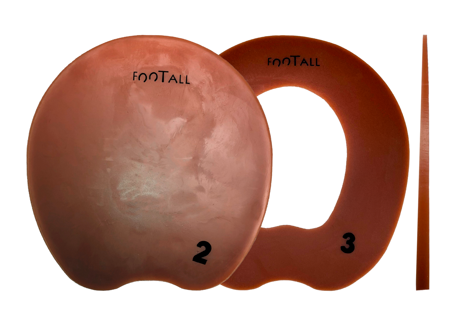 Realizzate con lo stesso poliuretano ad alte prestazioni delle solette piane, ma nella variante rialzate al tallone. Non perdono la forma nel tempo, e anche queste sono riutilizzabili e idrorepellenti.